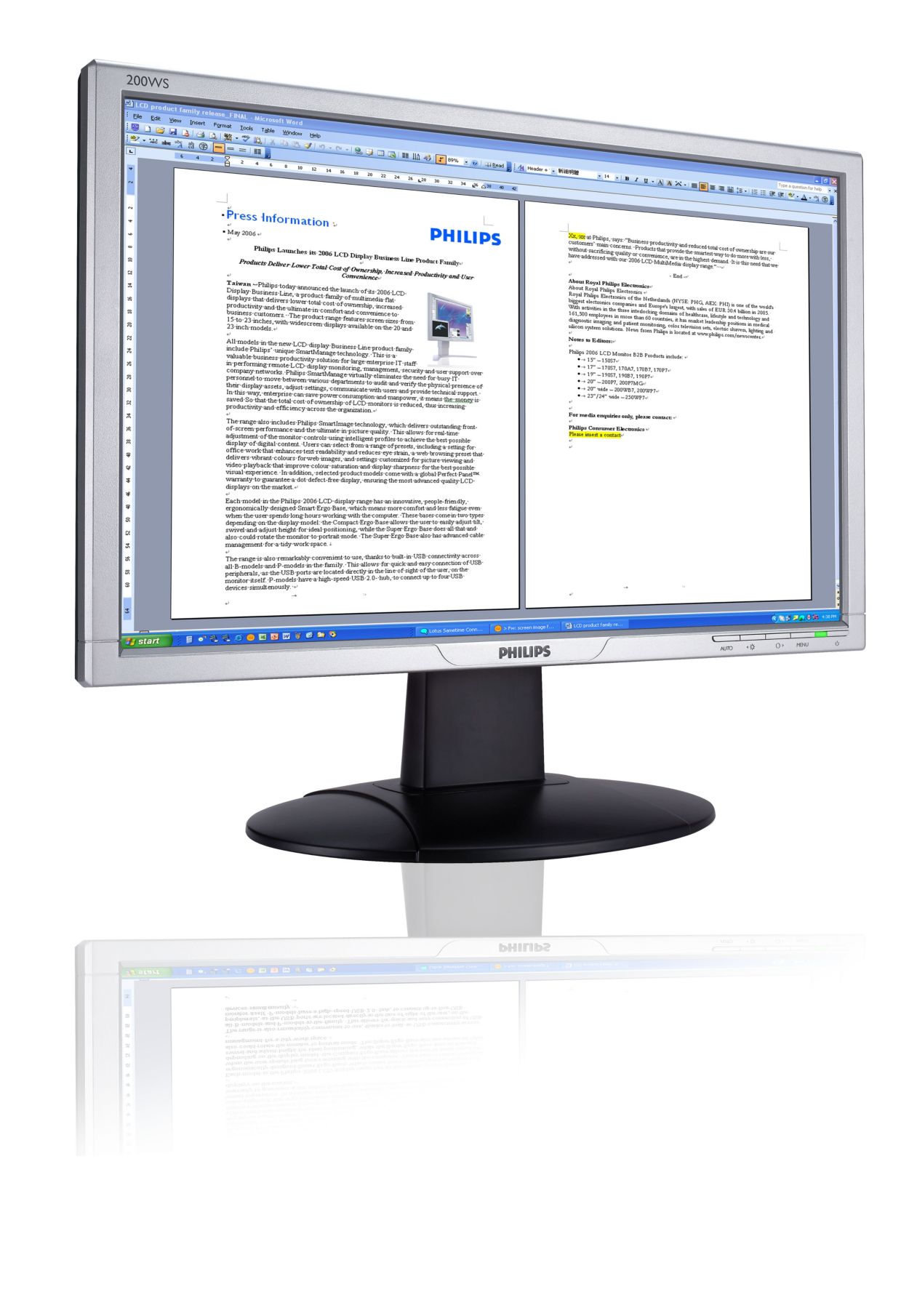 A big, widescreen display that improves productivity by displaying two A4 pages side by side.